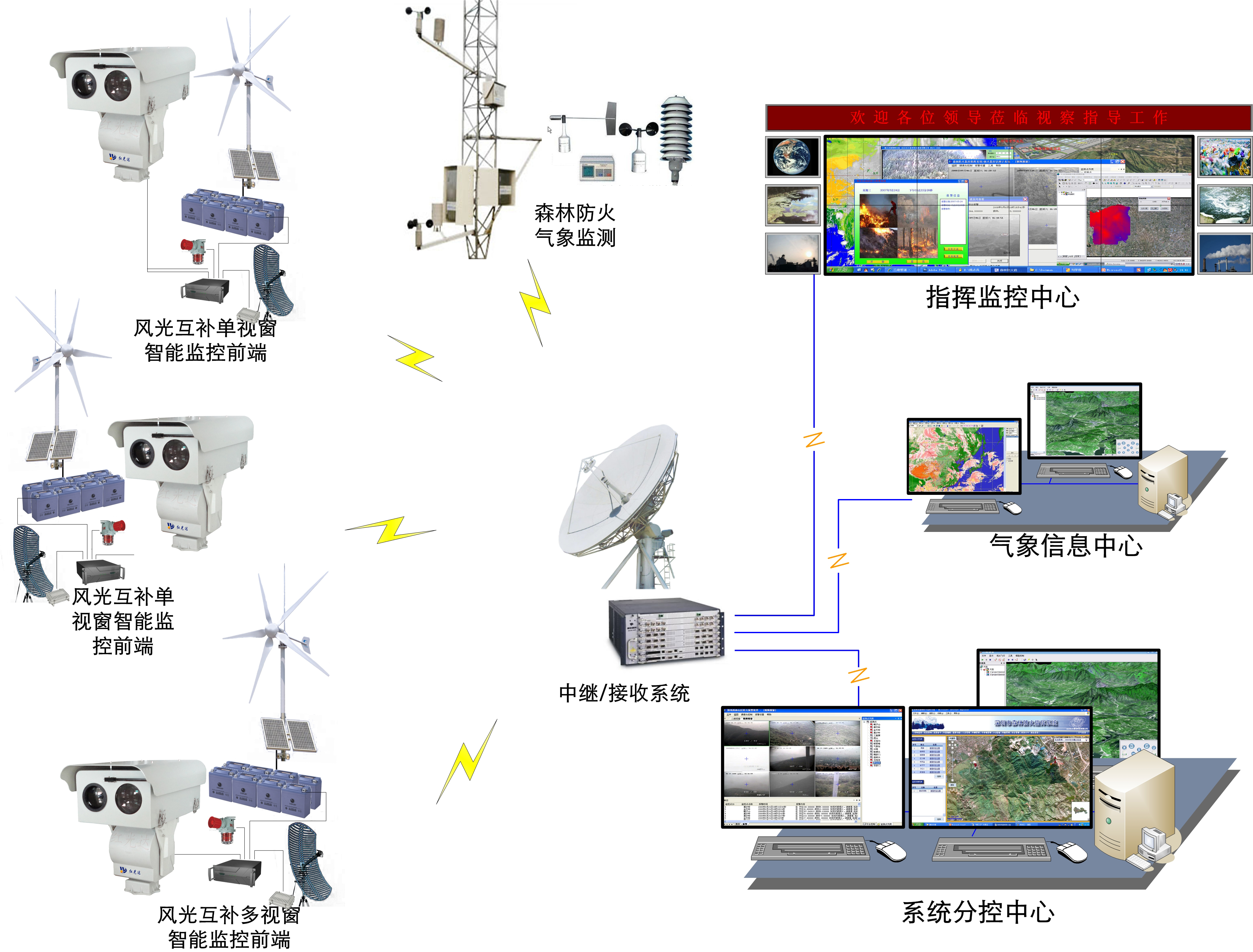 前端視頻監(jiān)控測溫預警使用深圳紅光達科技設備:設置在林區(qū)各消防瞭望塔制高點上,建設火險熱成像測溫預警監(jiān)測數(shù)字化系統(tǒng);負責全天候?qū)α謪^(qū)自動掃描監(jiān)控、測溫預警監(jiān)測功能,并且系統(tǒng)具有多種光學傳感器,利用可見光透霧攝像機性能,克服了林區(qū)水霧大的缺點,利用熱成像熱圖監(jiān)測功能滿足了夜晚全黑情況下的監(jiān)控需求,實現(xiàn)了24小時全天候動態(tài)監(jiān)控功能,同時結(jié)合系統(tǒng)內(nèi)部集成的熱成像測溫預警功能模塊,對林區(qū)監(jiān)控區(qū)進行實時掃描實時計算方式,零時差溫度分析預警,加強了預警準確性和實效性。并且利用設備的晝夜監(jiān)控性能對林區(qū)植被生長情況、病蟲害情況、干旱缺水情況等進行實時觀察、監(jiān)控,在對森林火情實現(xiàn)實時測溫預警監(jiān)測的同時加強了林區(qū)的保護力度。